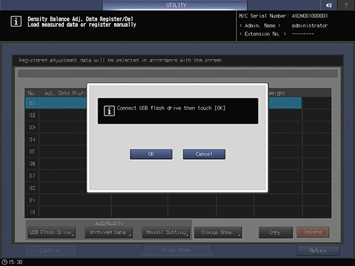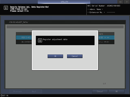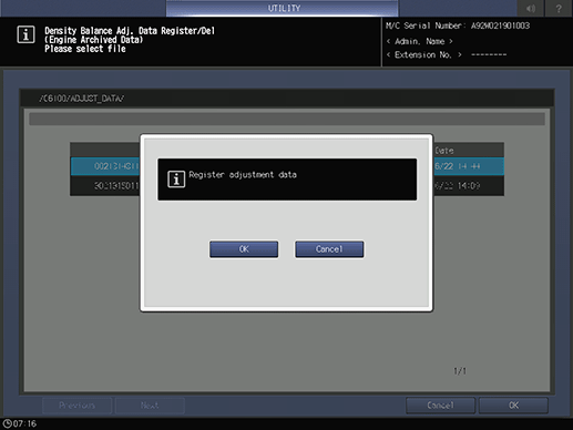 When the adjustment is completed, press OK on the Density Balance Adj. Data Register screen.