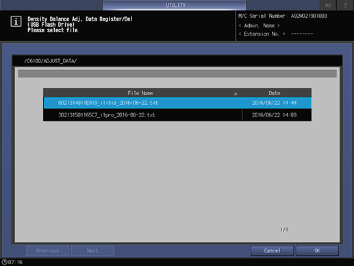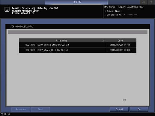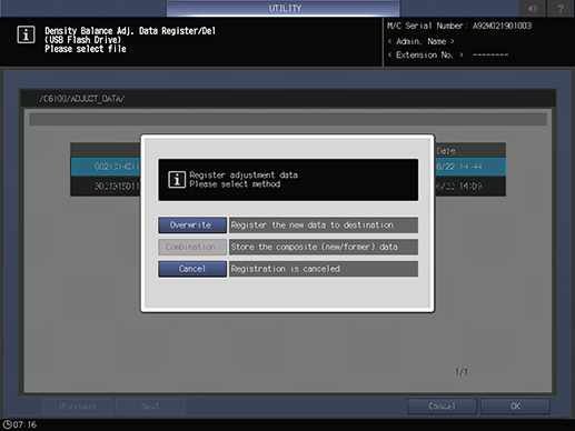supplementary explanationIf the existing data is selected, the registered density balance adjustment data is displayed.