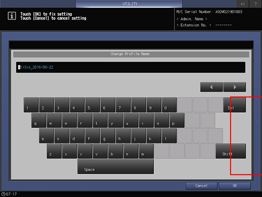 supplementary explanationYou can change the Adj. Data Profile Name, if desired. Press Change Name to display the Change Profile Name screen. Enter the desired profile name, then press OK.