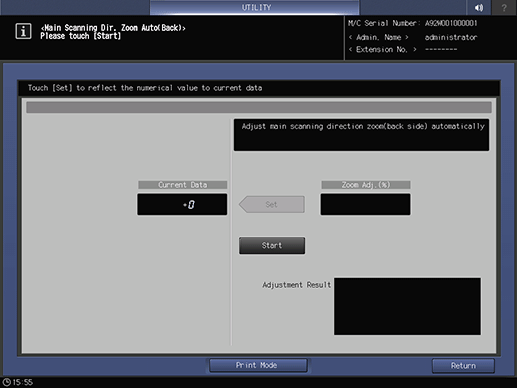 Press System Setting on the Administrator Setting Menu screen, and then press Expert Adjustment, ADF Adjustment, and Main ScanDir. Zoom Auto(Back) in sequence.