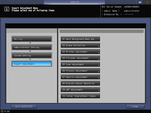 • supplementary explanationTo cancel the change, press Cancel. In either case, the screen returns to the Expert Adjustment Menu screen.