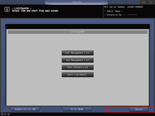 To save the data of lists and reports collectively on a USB flash drive, press Output All to USB.