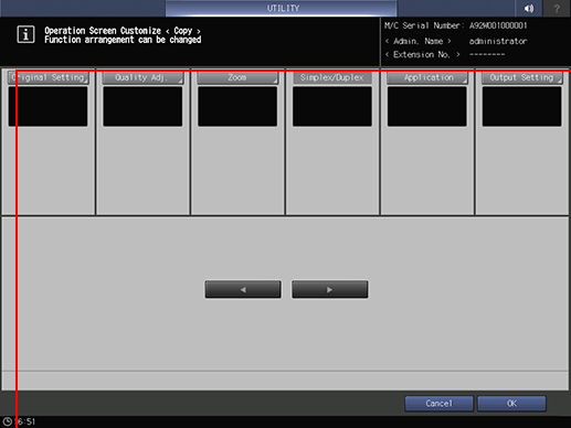 Press System Setting on the Administrator Setting Menu screen, and then press Operation Screen Customize and Copy Screen Customize Set in sequence.
