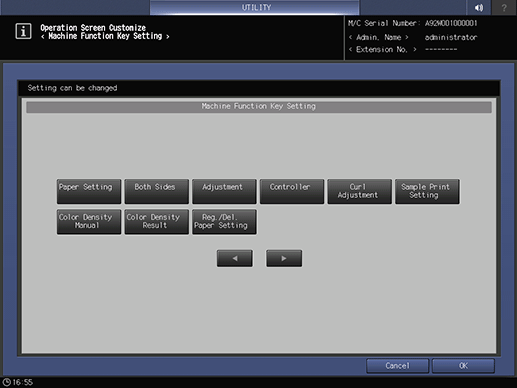 supplementary explanationTo cancel the change, press Cancel. In either case, the screen returns to the Operation Screen Customize Setting Menu screen.