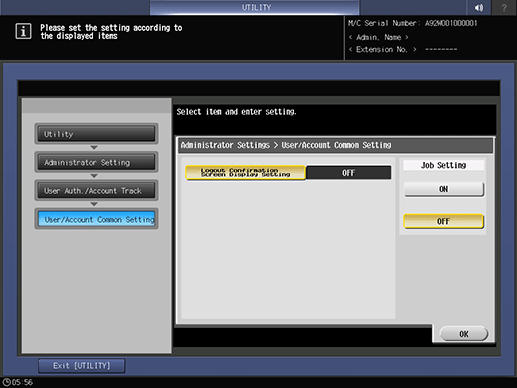 Press the Logout Confirmation Screen Display Setting, and select ON or OFF on the right.
