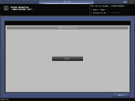 This service, monitoring the machine status, is called CS Remote Care. CS Remote Care requires a service setting. Using this service enables Start on the Administrator Call screen. For details, contact your service representative.