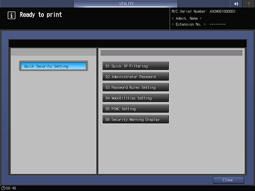 Follow the procedure on Displaying the Quick Security Setting Menu Screen to display the Quick Security Setting Menu screen.
