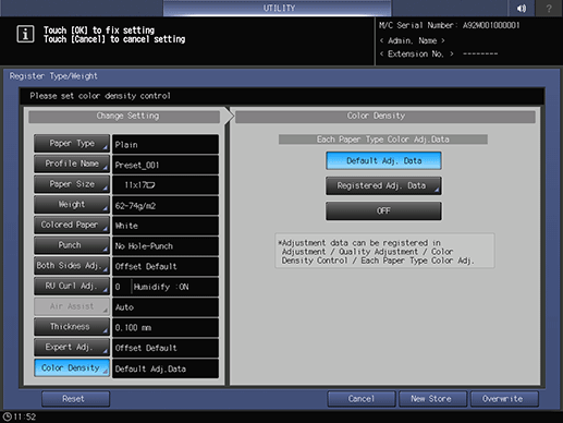 • supplementary explanationWith Default Adj. Data selected, the machine performs Gamma Correction with reference to the adjustment data preset on the machine.