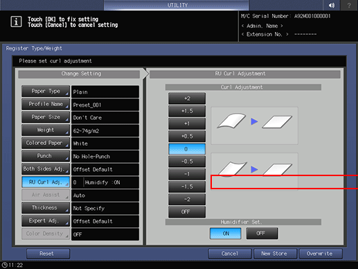 • supplementary explanationHumidifier Set. of RU Curl Adjustment is available on the machine with Relay Unit RU-511 that has Humidifier HM-101 mounted.