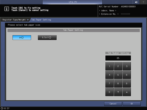 11. Selecting Tab Paper displays the Tab Paper Setting screen.