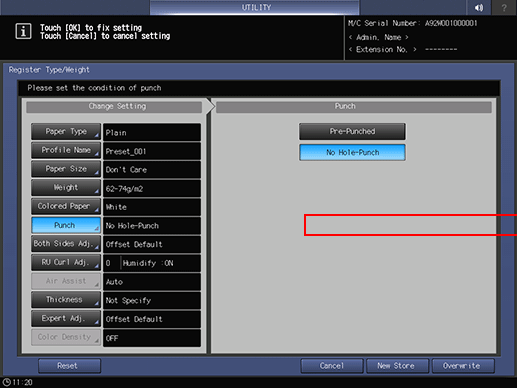 Select Pre-Punched for punched paper, or select No Hole-Punch for paper without punch holes.
