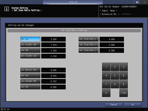 Press System Setting on the User Setting Menu screen, and then press Set Zoom Ratio Setting.