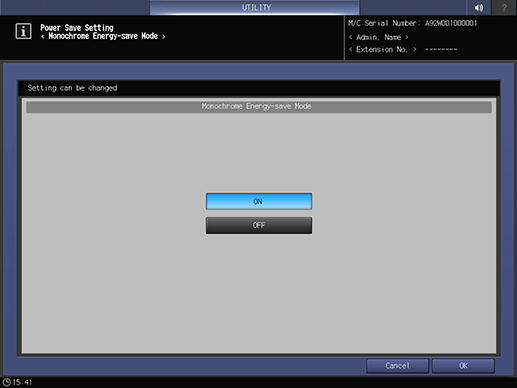 Press System Setting on the User Setting Menu screen, and then press Power Save Setting and Mono Energy-save Mode in sequence.