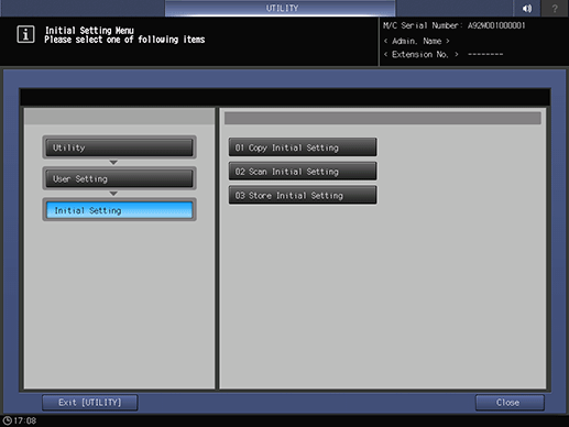 2. Press Initial Setting on the User Setting Menu screen, and then press Scan Initial Setting.