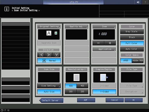 Set the default settings of the Scan Settings screen. To enable this function, select Initialize for Reset Button Function in Job Reset Setting.
