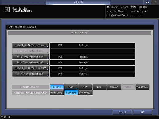 You can make the settings in also Scan Setting from Administrator Setting. For details, refer to [Administrator Setting]: [Scan Setting].