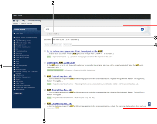 3 | Display selected items only | Click this to display only the items selected in the Refine check box. If you close the Web browser or carry out another search using another keyword, the display is reset. |