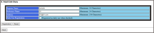 supplementary explanationFor details about the setting values, refer to Registering a Destination and a Subject and a Message of E-mail.