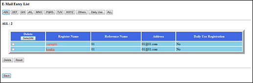 supplementary explanationClick on Back. The screen returns to the Registered List screen.