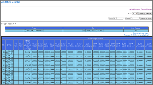 • You can also check the job billing counter by clicking JOB LIST - Output Hist. on the machine.