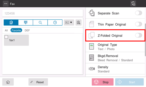 If a folded original is loaded into the ADF, the original size may not be able be detected accurately. To scan the folded original on the ADF, set this option to ON.